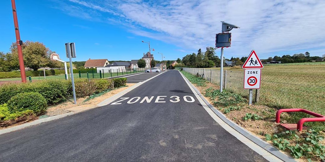 – l’aménagement de dispositifs réduisant la vitesse des véhicules dans les zones habitées (création de zones de partage limité à 20 km/h, mise en place d’écluses, chicanes et de plateaux surélevés)
