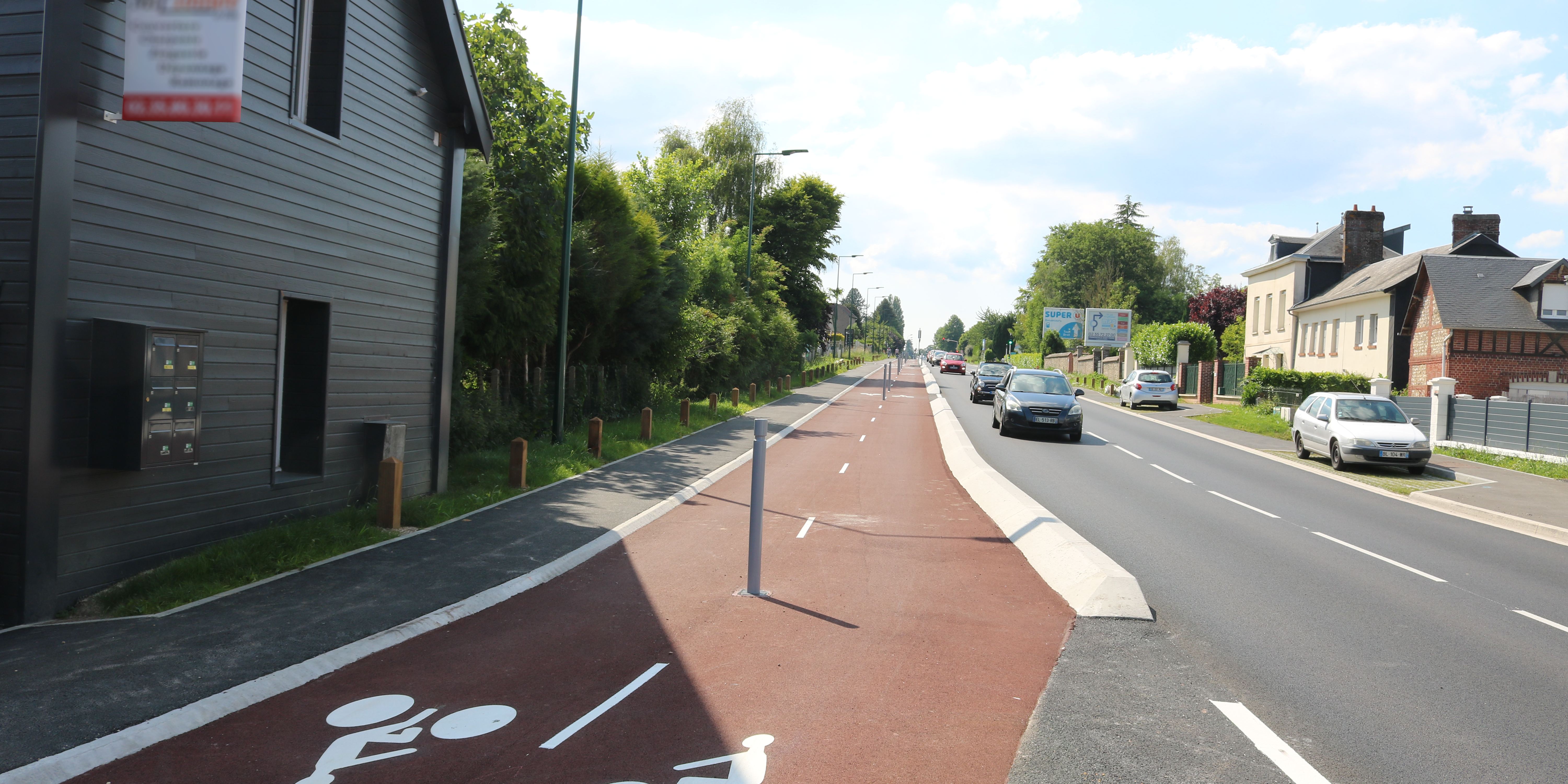Cet itinéraire cyclable est identifié dans la politique cyclable de la MRN comme un axe structurant nécessitant l’insertion d’aménagements cyclables structurants. Aussi, les aménagements mis en œuvre sont une piste cyclable bidirectionnelle, sécurisée et séparée des flux piétons.