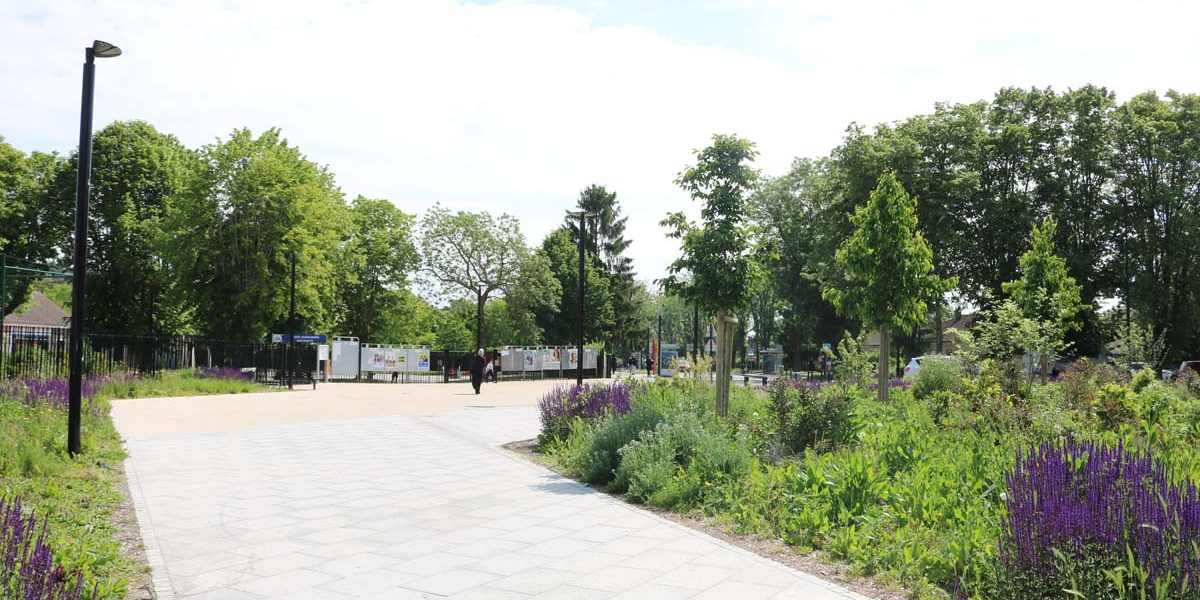 Plantation d’arbres isolés et en groupement, d’arbustes, d’un mélange vivaces et couvre-sol.