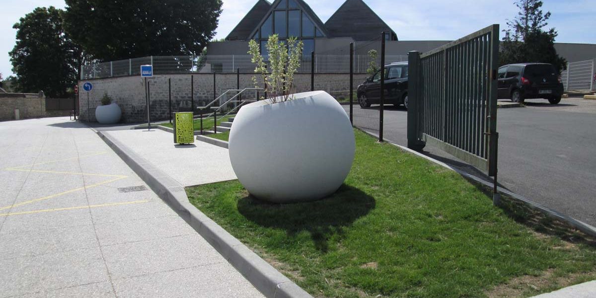 Les revêtements proposés sont homogènes sur l’ensemble des aménagements : Enrobé noir sur voirie, Béton de Ciment Mince Collé (BCMC) aux abords de l’établissement scolaire et sur les trottoirs, béton désactivé gris clair à chaque entrée riveraine.